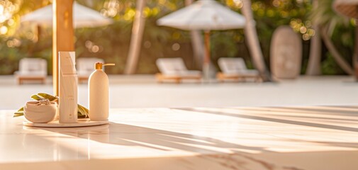 Luxurious Resort Elegance: Serene White Sand Marble Setting with Exclusive Vacation Vibe