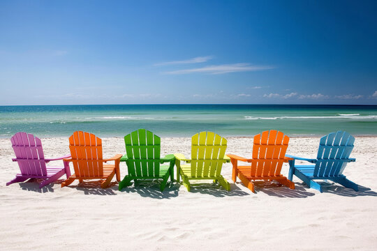 Colorful Beach Chairs at The Seaside, Which Also Could Represent The LGBTQIA+ Community, Symbol Of Diversity, Inclusive.