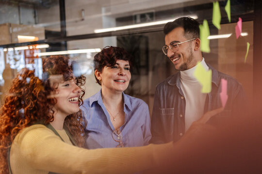 Marketing strategy, business women and collaboration teamwork in inclusive office room with diversity empowerment. Smile, happy and motivation people in communication, meeting and designer innovation
