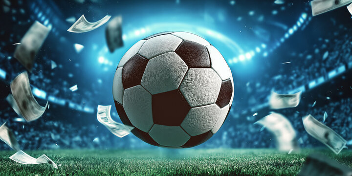 Soccer ball flying towards goal on sunny day as goalkeeper dives