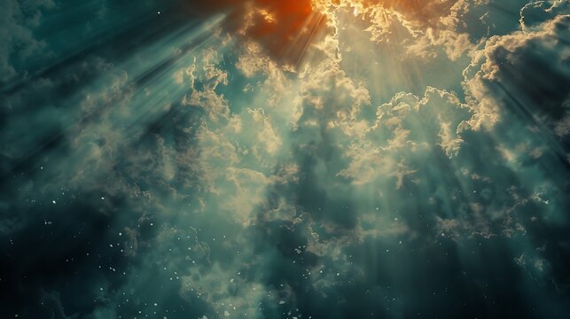 A beautiful sky with a bright shining sun breaking through the clouds. The sky is a deep blue color and the clouds are a light gray color.