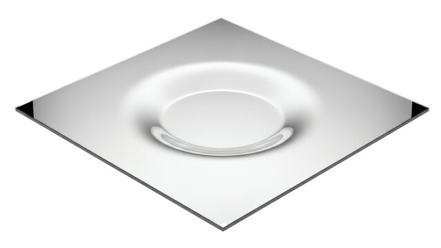 Shiny metallic sphere on soft gel pad showing concentric pressure rings and indentation