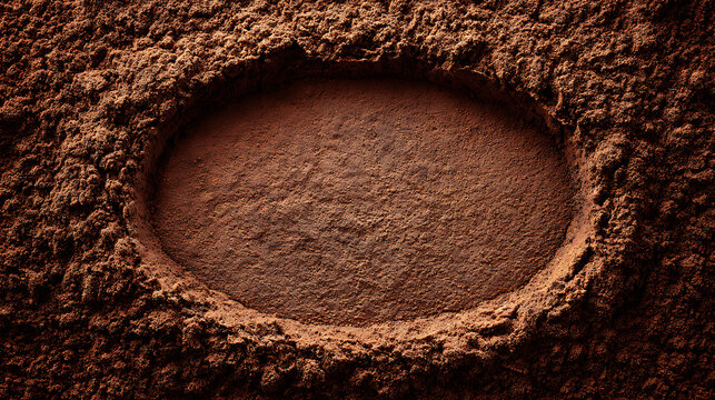 Close-up of a textured surface with a recessed oval-shaped indentation in warm lighting.