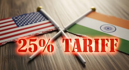 Crossed Flags and 25% Tariff Text Overlay, US-India