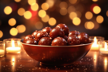 indian sweet food gulab jamun in bowl.