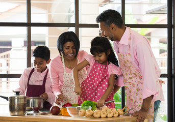 indian family spending quality time busy cooking at home