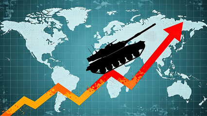 Rising global military spending indicated by tank silhouette on upward trend chart