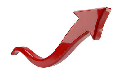 3D red curved arrow, isolated on transparent background