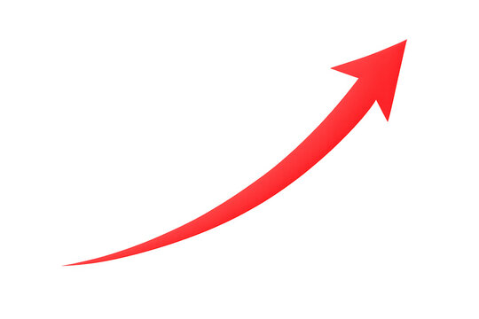 Red curved arrow icon indicating rising trend, growth, increasing profit, progress, and success on a transparent background