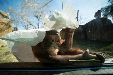 Insulation of a roof structure with wood wool. Close-up of a layer of mineral wool for insulation and soundproofing of walls and roof.
