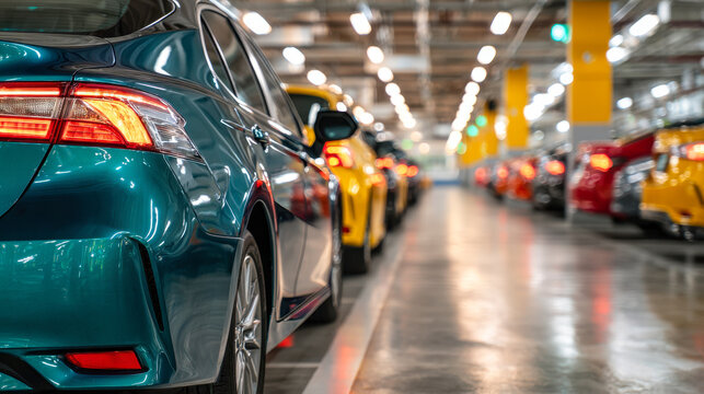 Underground garage or modern car parking with lots of vehicles, perspective