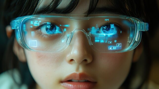 Factory worker using augmented reality (AR) glasses to monitor production workflows, showcasing the integration of AR in modern industry