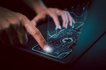 Person using a laptop computer with digital transformation change management, internet of things for new technology and business process strategy, cloud computing for bigdata, Ai technology.