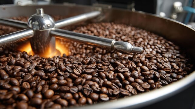 freshly roasted coffee beans in hull of industrial coffee roasting machine : Generative AI