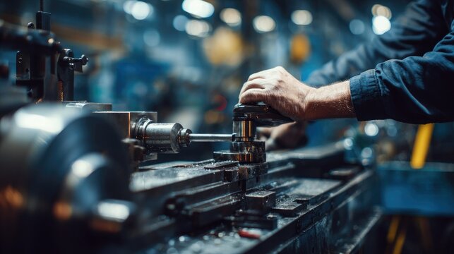 Worker operating machinery in foundry workshop