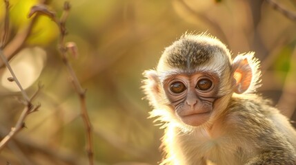 cute baby monkey keeps watching with eyes wide open, AI generated