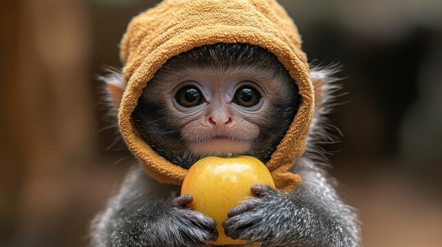 Close-up of a playful infant monkey with a gentle, expressive gaze