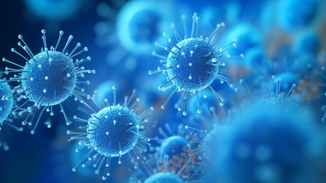 Blue viruses in infected organism background, photo shot --ar 16:9 --v 5.2 Job ID: 77704c2a-b333-4a40-b088-2629356a6028