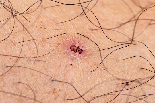 Infected wound on the knee close up, healing process