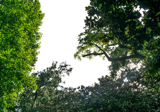 Vista inferior de ramas de árboles frondosos