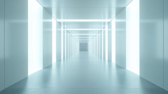Futuristic blue tunnel with infinite geometric patterns