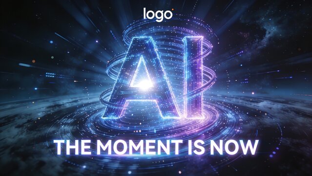 Glowing ai letters with futuristic digital data background