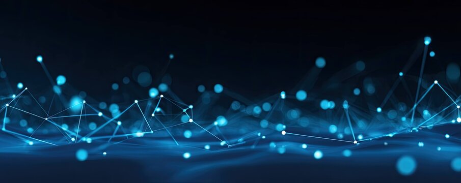 Exploring Wide Perspectives of Abstract Digital Networks in a Blue Glowing Graphic Art Environment