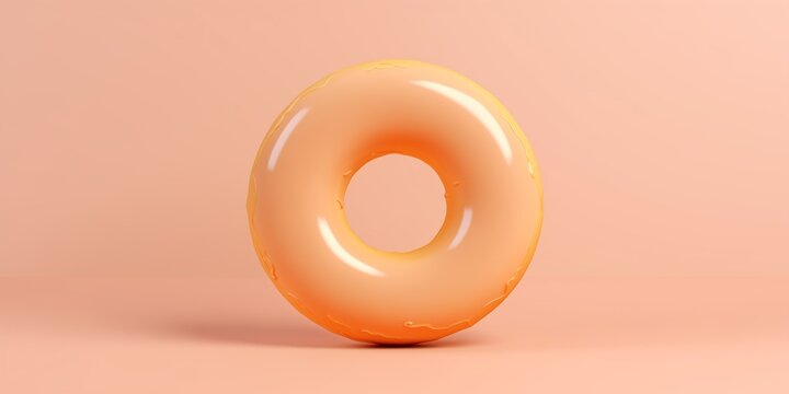 Top view summer background. Inflatable rubber donut ring floating on blue water in swimming pool with copy space, 3d rendering.