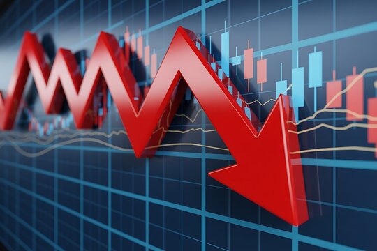 3d rendered market decline chart with red arrow and grid background showing financial downturn trend