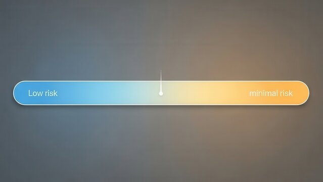 A clean, conceptual risk assessment scale illustrates a spectrum from 'Low risk' to 'minimal risk' with a pointer, symbolizing safety, security, and prudent decision-making in business or finance.