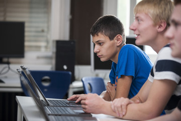 Vocational school students in computer lab