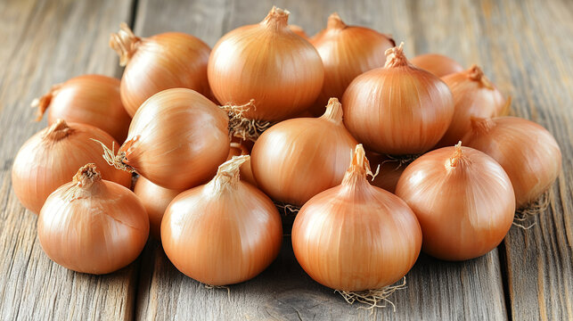 Fresh shallots arranged on wooden surface create vibrant display of earthy tones. These small, bulbous vegetables are perfect for enhancing various dishes with their unique flavor