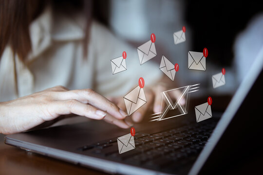 Businessman using laptop with spam virus with warning to alert internet security and data breach or hacker or spyware.