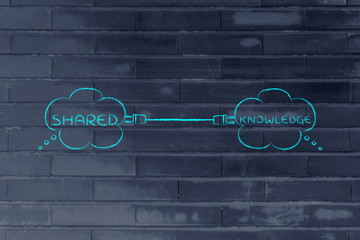 Man's hands holding message bubbles network. Representing communication, connection, social media, information sharing, and global digital netwo