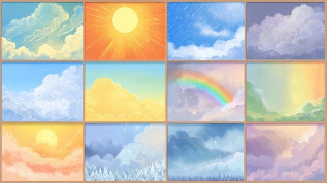 Weather Forecast Collage: Sun, Clouds, Rain, Snow and Storms in a Modern Illustration