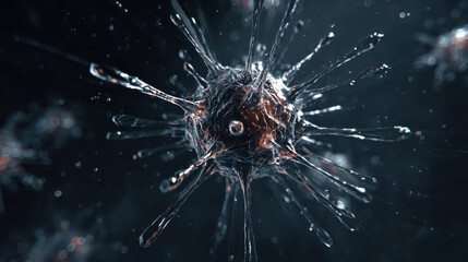 Digital illustration of a virus. Artistic representation of a virus, emphasizing its structure and potential threat, perfect for scientific or informational contexts.