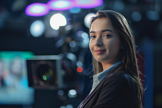 Generative AI Image of Female Television Host Conducting Live Interview in Studio
