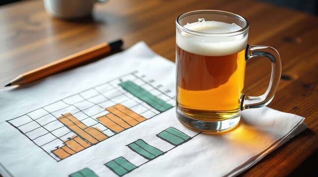 Analyzing business trends with beer and charts office setting informative graphs relaxed atmosphere unique concept