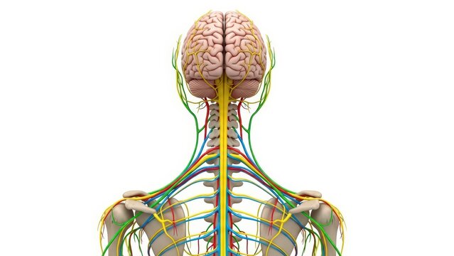 Detailed view of human nervous system highlighting the brain and spinal cord in a transparent body