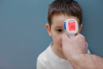 using infrared thermometer to measure child's body temperature