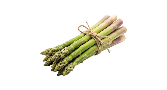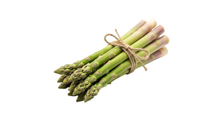 Fresh green asparagus spears tied with twine isolated on transparent background
