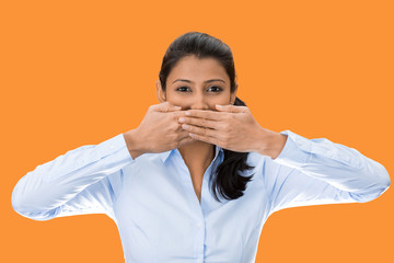 speak no evil, woman covers her mouth, keeps secret