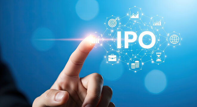 IPO Concept with Finger Touching Screen: Initial Public Offering, Stock Market, Investment, Finance, Business Growth, and Digital Technology Future