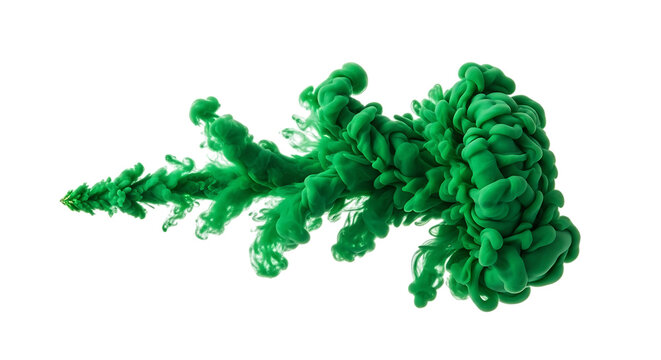 vibrant green ink cloud swirling and expanding in dark water, cutout, PNG isolated on white or transparent background