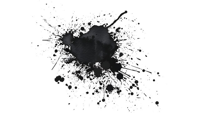 black ink splatter on white background,Paint brush strokes and drops texture.