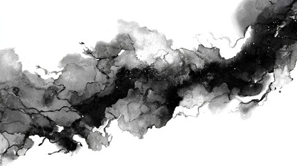 A black splatter ink background offers a striking and dynamic contrast and visual experience. Abstract black watercolor paint splash background. black splash isolated on white