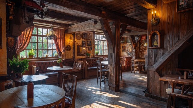 Fantasy Architecture: Indoor Medieval Tavern with Stone Castle Interior Design