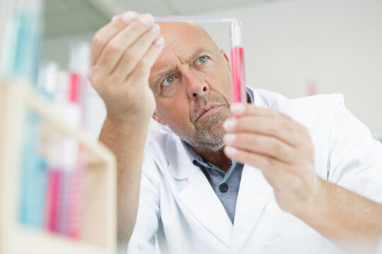 portrait of a handsome mature male lab technician concentrated