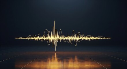Modern tech booth featuring a sleek touchscreen wall displaying a digital audio waveform for an advanced data analysis concept.