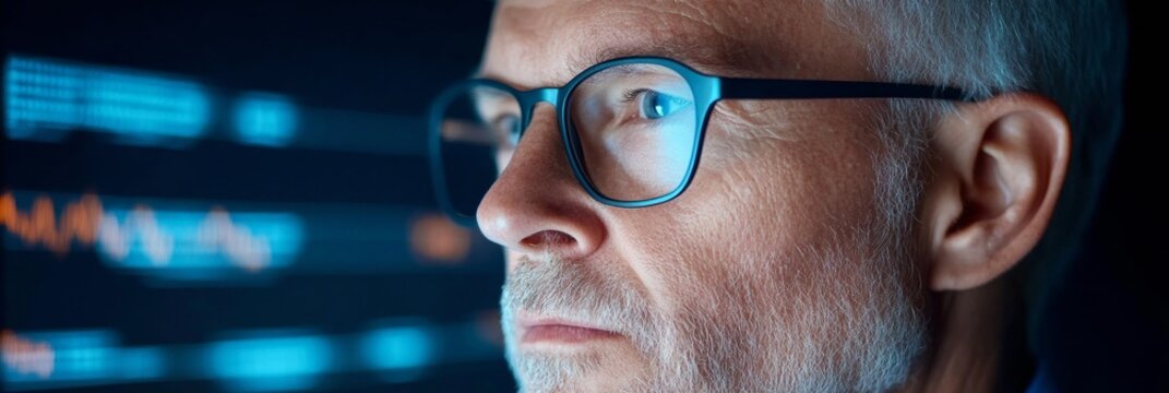 Sophisticated Tech Workstation Mature Male Software Developer Analyzing Code on Multiple Screens - Advanced Distributed Development Management for Innovative Agile Solutions